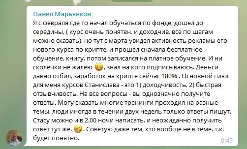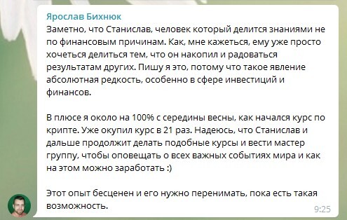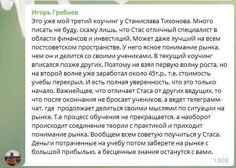 Станислав Тихонов не создает продукт на продажу, а реально делится с людьми знаниями и опытом, что в современном мире большая редкость.