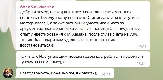 Доступ в закрытый Telegram чат с обсуждением текущей ситуации и информацией о моих сделках на рынке