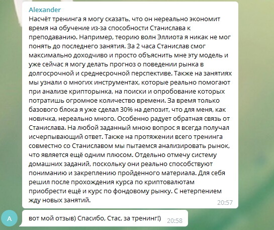 На этом курсе вы получите действительно качественную информацию по анализу и торговле именно на криптовалютном рынке